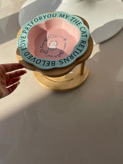 Solid Wood Pet Bowl with Decorative Lace Edges